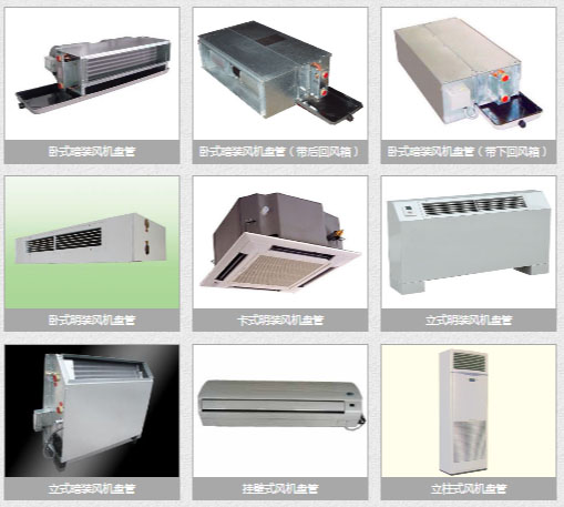 中央空調(diào)末端設(shè)備有很多,主要有:各式風(fēng)機(jī)盤(pán)管(立式明裝風(fēng)機(jī)盤(pán)管、臥式暗裝風(fēng)機(jī)盤(pán)管,壁掛式風(fēng)機(jī)盤(pán)管,立柜式風(fēng)機(jī)盤(pán)管,臥式明裝風(fēng)機(jī)盤(pán)管),變風(fēng)量空氣處理機(jī)組(新風(fēng)機(jī))、新風(fēng)換氣機(jī)(窗式新風(fēng)換氣機(jī)、壁掛式新風(fēng)換氣機(jī),落地式新風(fēng)換氣機(jī)),組合式空調(diào)器、冷卻塔、溫控開(kāi)關(guān)、水流控制閥(二通閥)、風(fēng)閥等。